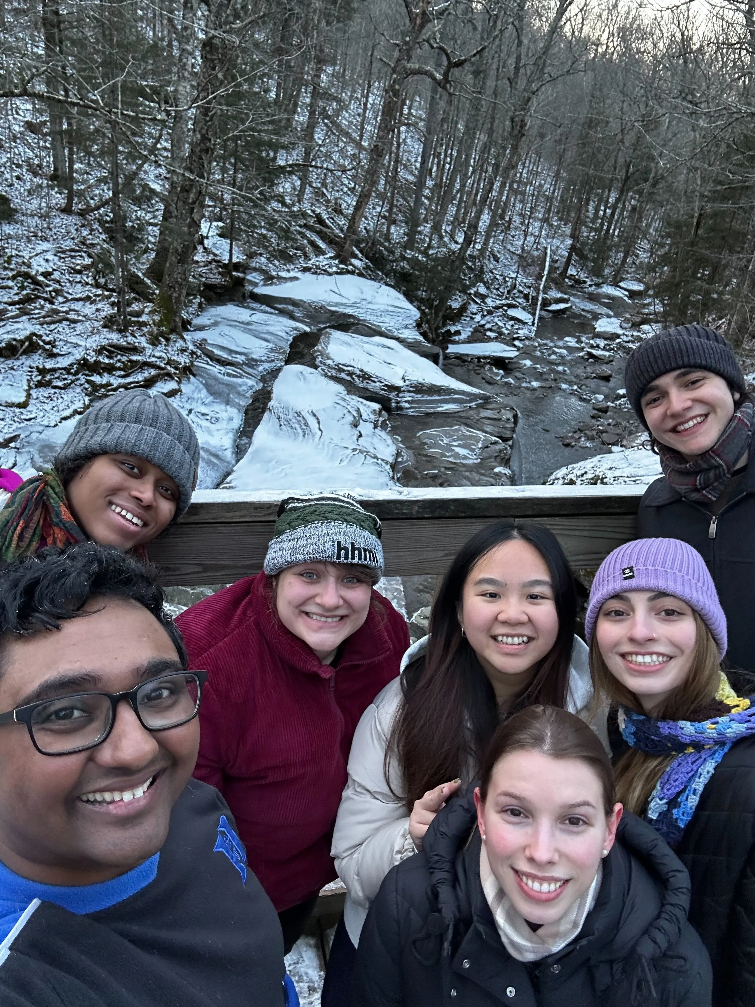 January 2024 - First LAB RETREAT -- Three days of science, lots of cooking, hiking, and fun up in the Catskills. Bonus: we got a bunch of snowfall and the lab threw snowballs at Kapil.